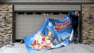 A: Installation is straightforward. First, clean the top area of your garage door. Attach one side of the Velcro strips to the door, then hook the bungee cords through the grommet holes at the bottom of the banner and secure them to the garage door hinges at the back. Follow the included instructions for a hassle-free setup.